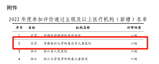 根據(jù)國家衛(wèi)生健康委醫(yī)院管理研究所《關(guān)于公示2022年度電子病歷系統(tǒng)功能應(yīng)用水平分級(jí)評(píng)價(jià)新增高級(jí)別醫(yī)療機(jī)構(gòu)結(jié)果的通知》,芯聯(lián)達(dá)用戶北京兒童醫(yī)院的電子病歷系統(tǒng)功能應(yīng)用水平順利通過六級(jí)評(píng)審,表明該醫(yī)院在電子病歷系統(tǒng)的應(yīng)用方面達(dá)到了很高水平。通知顯示,2022 年度參加評(píng)價(jià)通過五級(jí)及以上醫(yī)療機(jī)構(gòu)(新增)名單共89 家,其中8家評(píng)審結(jié)果達(dá)到了六級(jí),1家達(dá)到了八級(jí)。目前,全國通過六級(jí)以上評(píng)審的醫(yī)院共有 40 余家,北京兒童醫(yī)院為北京市的 5家醫(yī)院之一。
